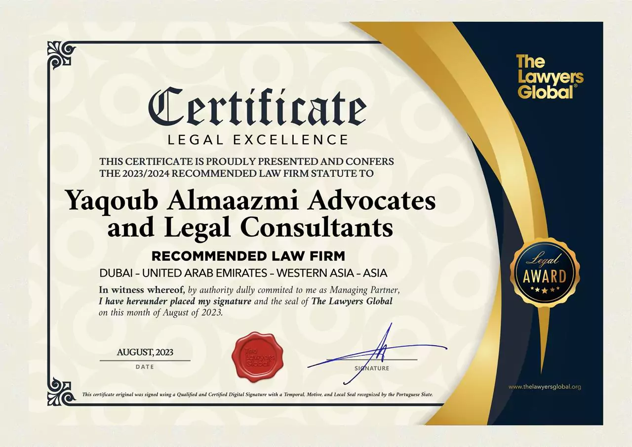 “The experience was great when consulting Yaqoub Almaazmi Advocates. The staff were always prompt in response... updates and clarification. The steps and possible outcomes were made clear from the onset.